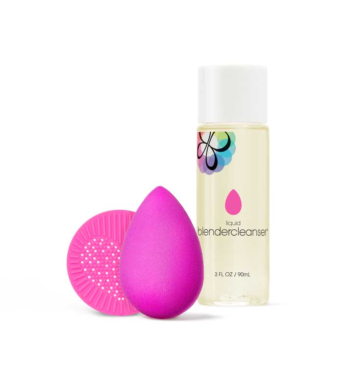 Beautyblender Base Station Essentials, Set: Burete pentru makeup + Solutie curatare + Paleta curatare