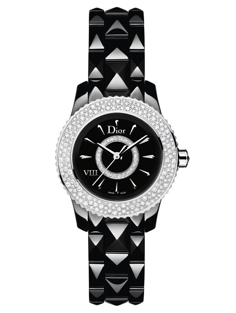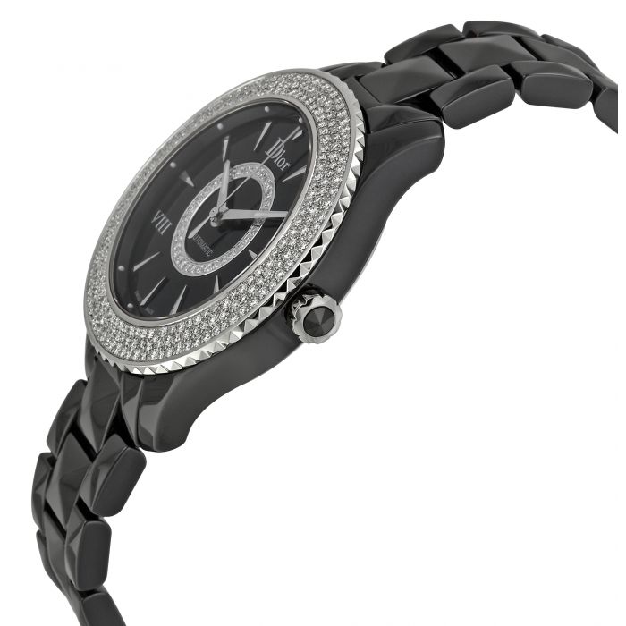 Ceas pentru femei Dior, Model VIII Black Ceramic. Acest ceas face parte din colectia Model VIII, si este decorat cu diamente in jurul cadranului.