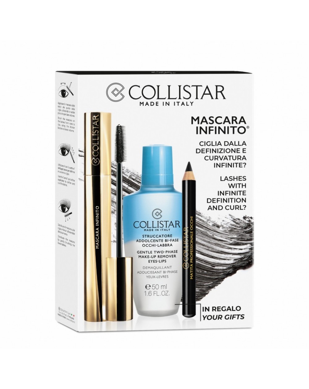 Collistar Kit, Femei, Set: Mascara Black 11 ml + Demachiant 50 ml + Creion dermatograf 0.8 g - Collistar