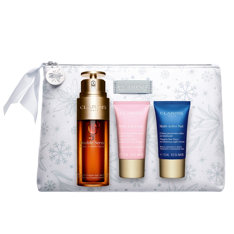 Clarins Double Serum & Multi Active, Femei, Set: Double Serum 50 ml + Multi Active crema pentru zi 15 ml + Crema pentru noapte 15 ml