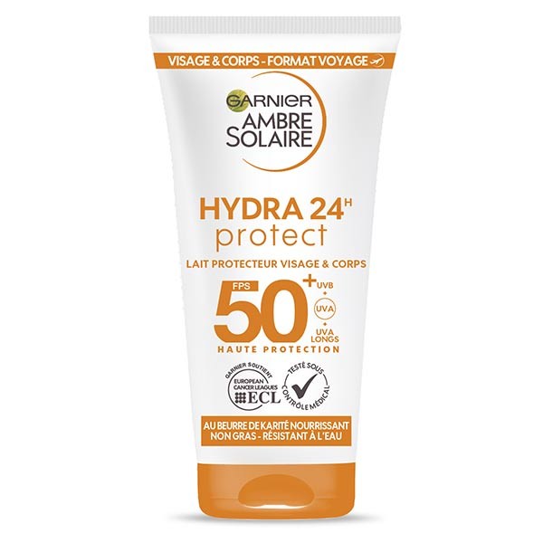Garnier Ambre Solaire Hydra 24H Protect, Lapte pentru corp si fata, SPF 50+, 50 ml