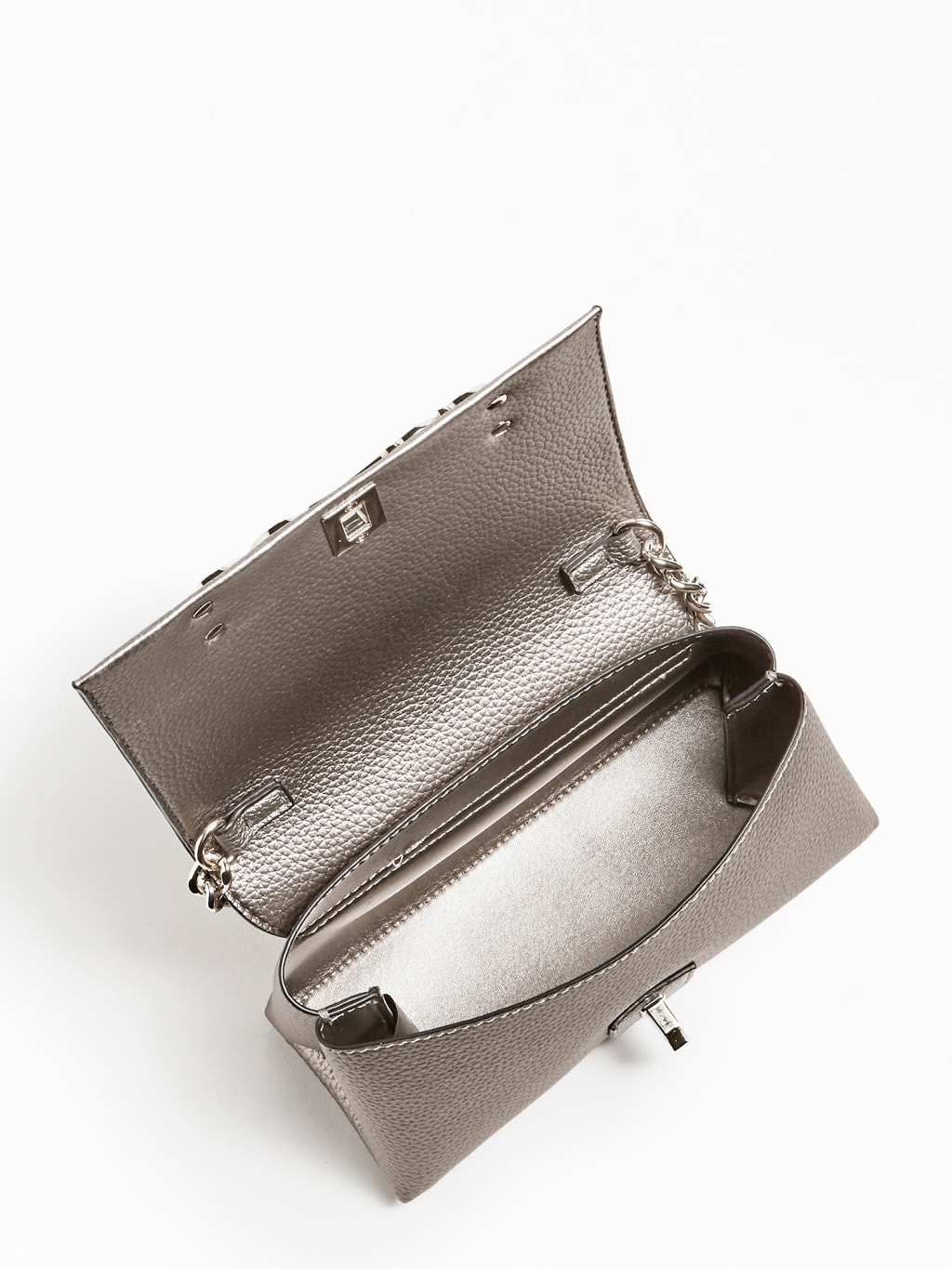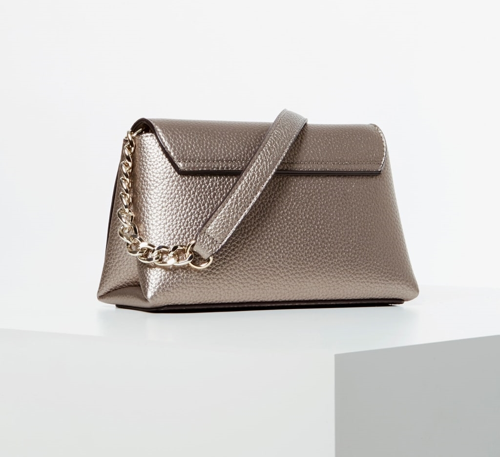 Geanta crossbody Guess, Model Uptown Chic, Argintiu este un produs al brandului Guess. Profita acum de pretul special de doar 602 lei pentru acesta!