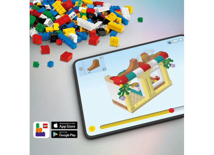 Produsul principal al companiei Lego consta in caramizi din plastic care se impletesc in culori diferite, care insotesc o serie de unelte, figurine numite minifigurine si multe alte obiecte. Piesele Lego pot fi asamblate si conectate in multe moduri pentru a construi obiecte, inclusiv vehicule, cladiri si multe altele. Orice figurina construita poate fi luata de la inceput, iar piesele reutilizate pentru a face lucruri noi.