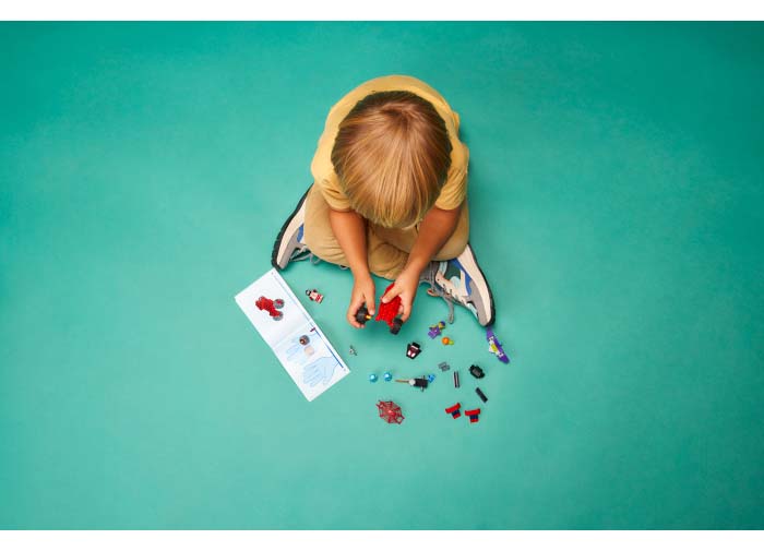Produsul principal al companiei Lego consta in caramizi din plastic care se impletesc in culori diferite, care insotesc o serie de unelte, figurine numite minifigurine si multe alte obiecte. Piesele Lego pot fi asamblate si conectate in multe moduri pentru a construi obiecte, inclusiv vehicule, cladiri si multe altele. Orice figurina construita poate fi luata de la inceput, iar piesele reutilizate pentru a face lucruri noi.