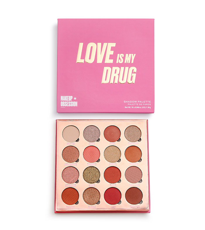 Obsession Love is My Drug Eyeshadow Palette, Paleta farduri de ochi, 16 x 1.3 gr
