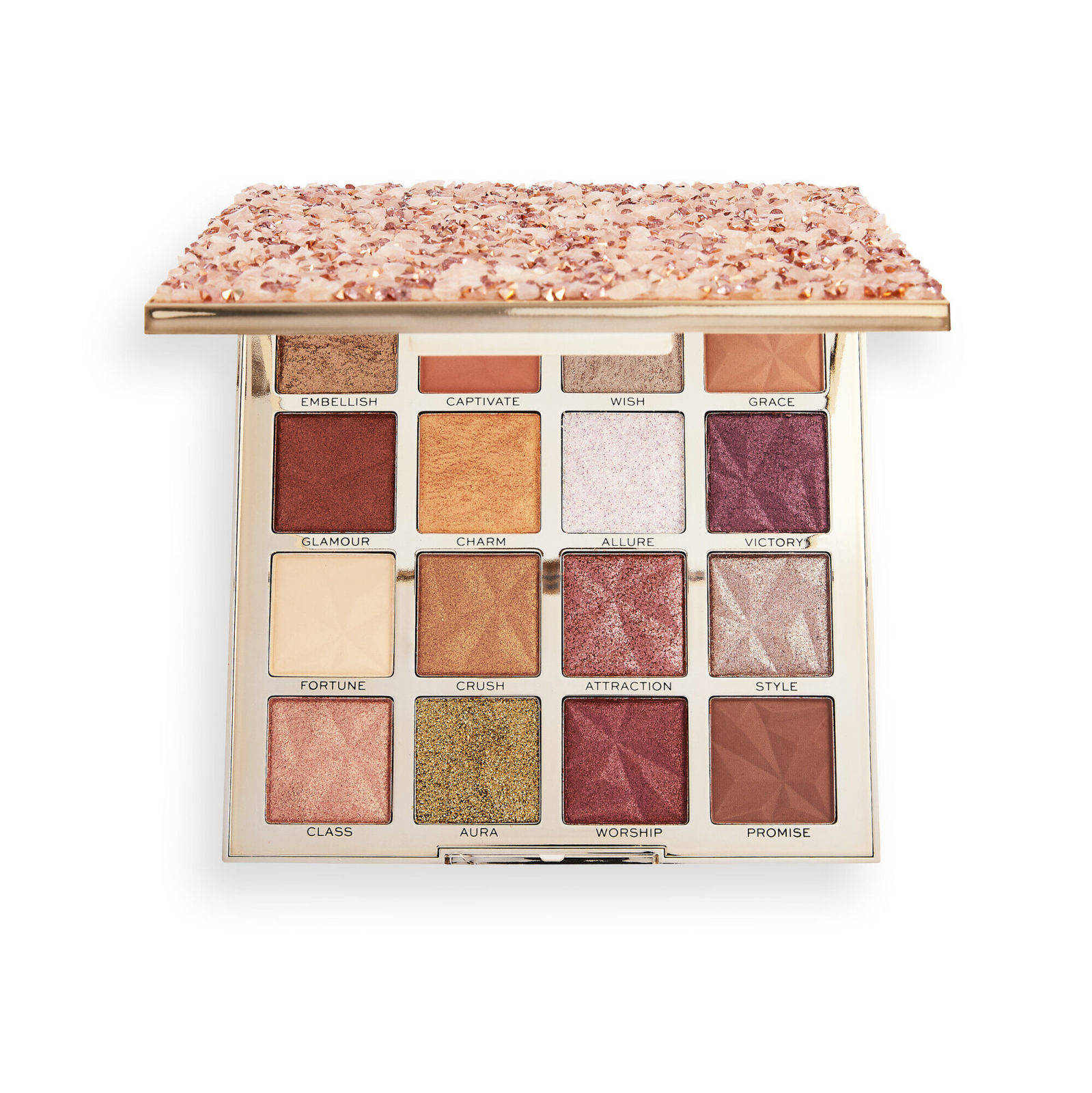 Makeup Revolution Pro Ultimate Crystal Eyeshadow Palette, Paleta farduri de ochi, Adorned, 16 x 1.5 gr