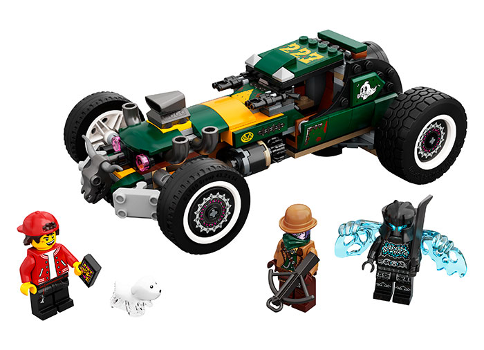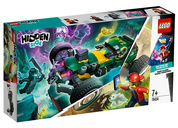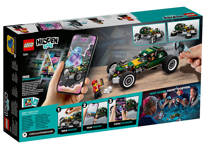 Zboara in Hidden Side cu Masina de cursa supranaturala pentru o uimitoare experienta de realitate augmentata (AR), cu unul sau mai multi jucatori! Construieste masina de curse cu minifigurinele Jack, Vaughn si Razboinic intunecat, plus o figurina caine Spencer.
