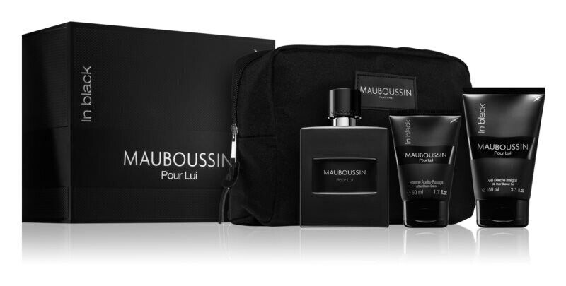 Mauboussin Pour Lui In Black Prestige, Barbati, Set: Apa de parfum, 100 ml + Balsam After-shave, 50 ml + Gel de dus, 100 ml + Portfard