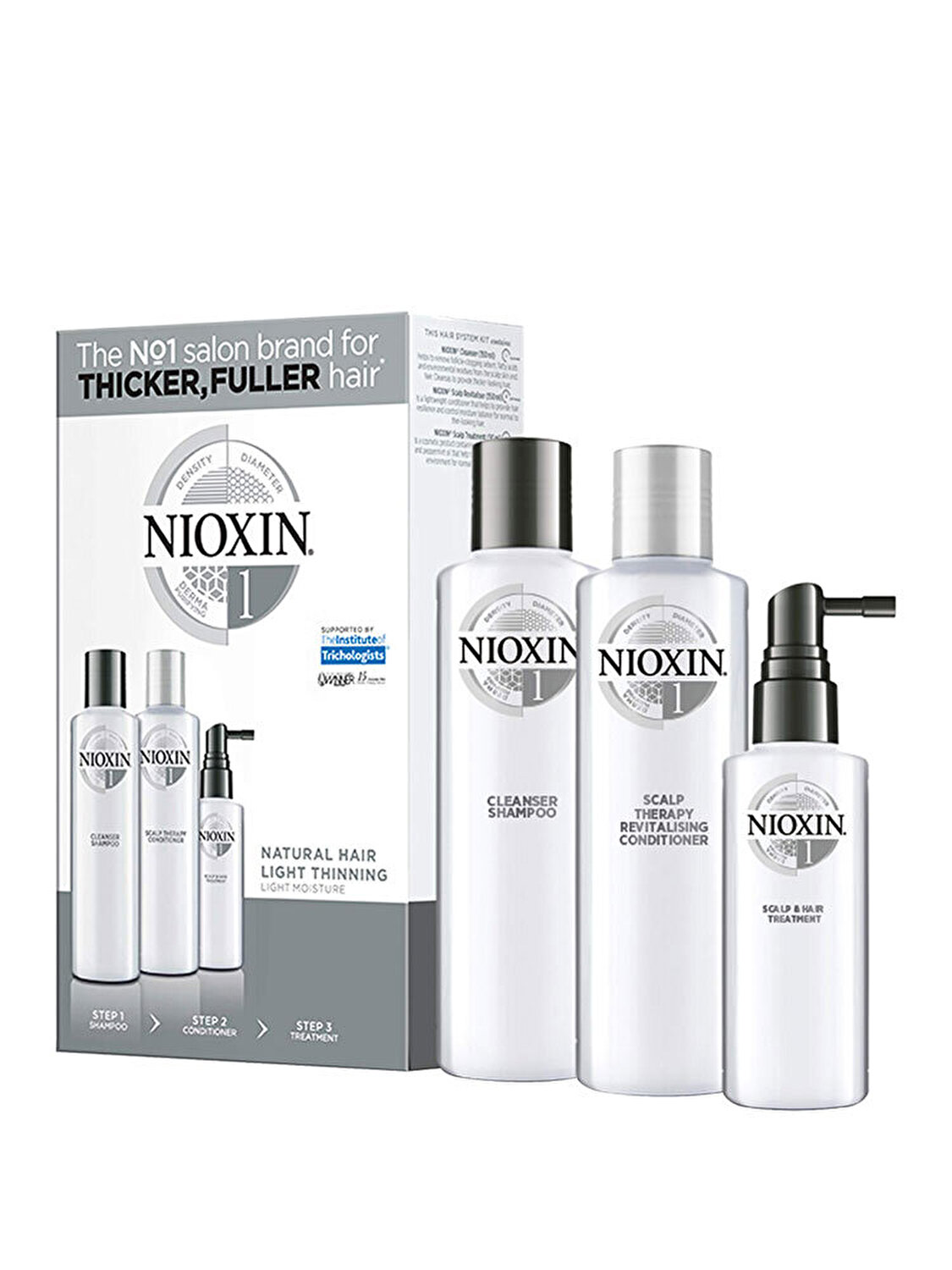 Set No. 1, Sampon 150 ml + Balsam 150 ml + Tratament 50 ml este un produs al brandului Nioxin. Profita acum de pretul special de doar 132 lei pentru acesta!