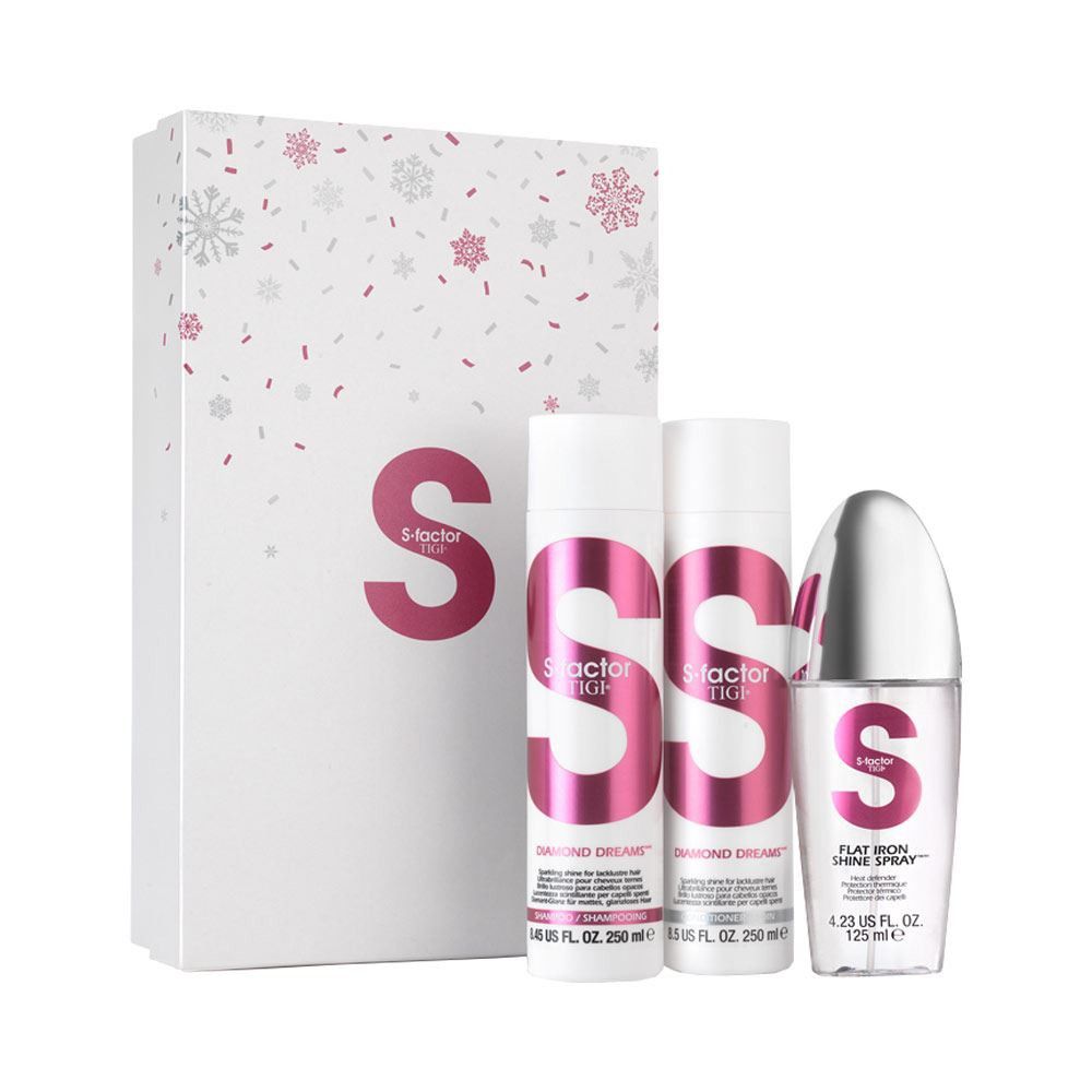 Set Tigi S.Factor Diamond Shine, Sampon 250 ml+Balsam 250 ml+Spray pentru protectie termica 125 ml este un produs al brandului Tigi. Profita acum de pretul special de doar 182 lei pentru acesta!