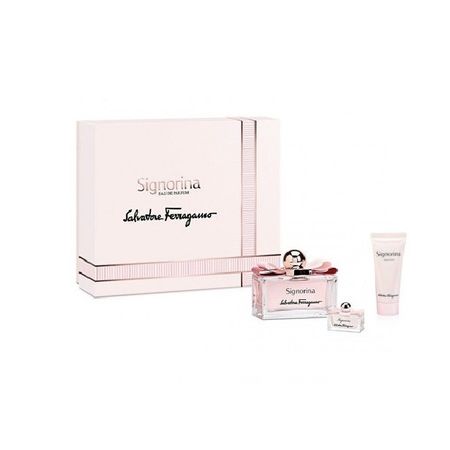 Signorina, Femei, Set: Apa de parfum 100 ml + Lotiune de corp 50 ml + Apa de parfum 10 ml este un produs al brandului Salvatore Ferragamo. Profita acum de pretul special de doar 272 lei pentru acesta!