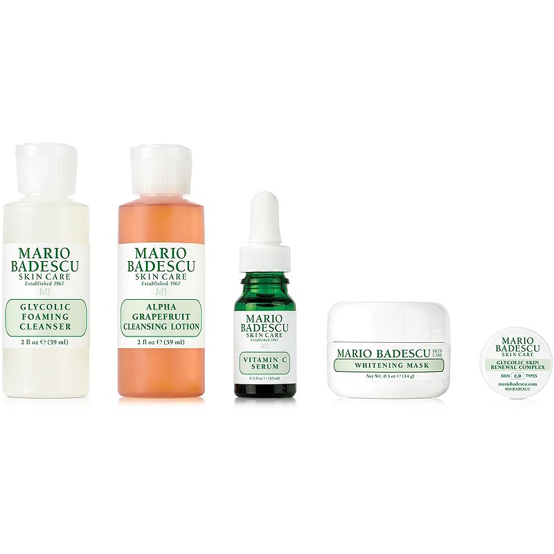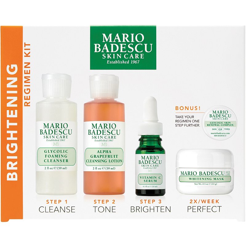 Mario Badescu The Brightening Kit, Set: Spuma curatare 59 ml + Lotiune curatare 59 ml + Ser vitamina C 10 ml + Masca luminozitate 14 g + Glycolic skin renewal complex